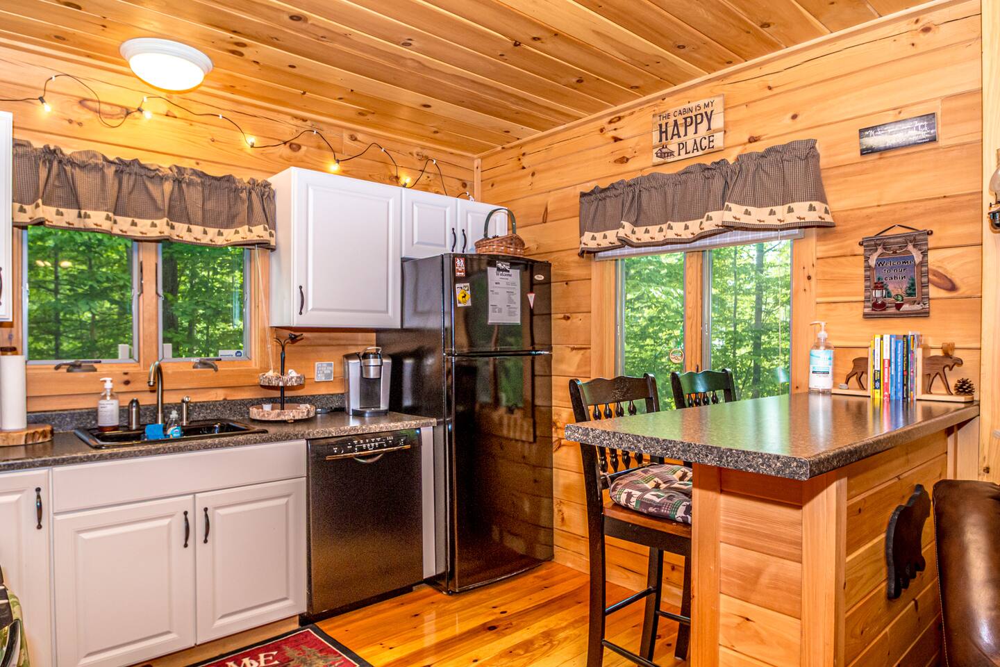Please ensure you read all of the house rules section of our listing before requesting to book, as this is an Airbnb requirement. Also, pets are not allowed at Moose Cabin. Escape to the serene beauty of the White Mountains at Moose Cabin, a newer log cabin designed for couples and solo adventurers seeking peace and relaxation. Set on a wooded 1/3-acre lot, this cozy cabin is immaculately clean and fully equipped to make you feel right at home. Enjoy a spacious farmer's porch, high-speed WiFi, a Smart TV, and a fully stocked kitchen with a Keurig coffee maker and complimentary coffee—everything you need for a comfortable stay. IDEAL LOCATION FOR ADVENTURE Moose Cabin is perfectly situated just a short drive from North Conway and several nearby ski resorts, including Attitash, Wildcat, and Cranmore, making it an ideal base for skiing or exploring the mountains. Whether you're eager to hit the slopes or simply unwind in the peaceful setting of the cabin, you’ll find everything you need here for a perfect getaway. CONVENIENT TO OUTDOOR FUN AND ATTRACTIONS Hiking & Outdoor Adventures: The cabin is a 30-minute walk to the East Branch of the Saco River and just 5 minutes to North Conway. There are numerous hiking trails nearby, and a closet for storing skis, snowshoes, and hiking gear. Ski Resorts & Attractions: Only a 10-minute drive to Jackson, with major ski resorts just 15 minutes away (Cranmore, Attitash, and Black Mountain). Wildcat and Bretton Woods are 30 minutes away, and Cannon and Loon are within an hour. Scenic Locations: Close to Pinkham Notch, Crawford Notch, and Franconia Notch for breathtaking mountain views and outdoor exploration. RELAX & UNWIND OUTDOORS Relax in the fresh mountain air on the farmer's porch with Adirondack chairs and two additional camp chairs, perfect for taking to the river or discovering your favorite spot in the White Mountains. Keep an eye out for the local wildlife, including black bears, deer, moose, coyotes, hawks, and turkeys, which you may spot from the comfort of the cabin. Book your stay at Moose Cabin today and start planning your next mountain adventure in the heart of the White Mountains!