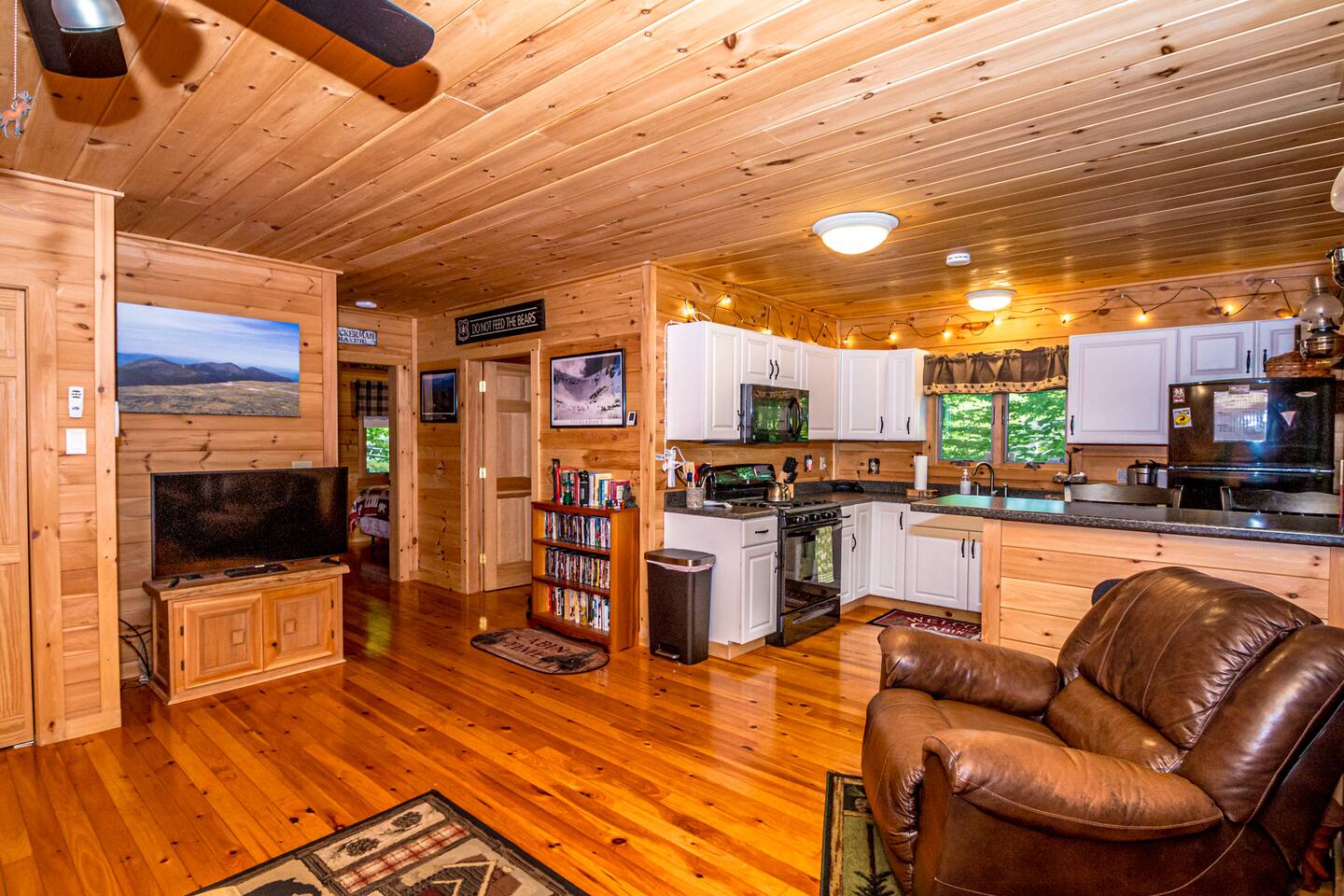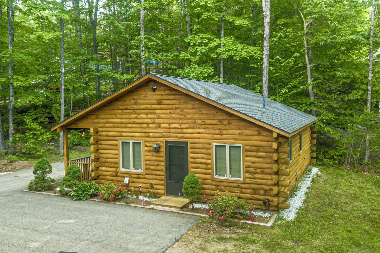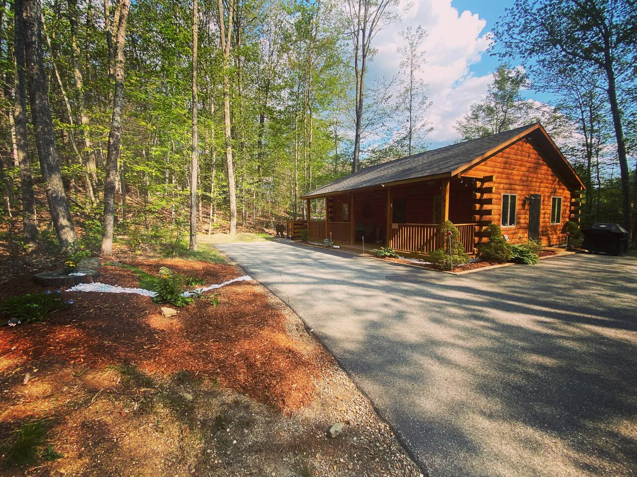 Our log cabin is situated on paved backroad on 1/3 of a wooded acre in the town of Intervale. There are other mountain homes located on both sides of our log cabin, and behind us. All of our neighbors are very nice, and it is a quiet neighborhood. Please note: You will be able to see cars driving on Dundee Road from the cabin, especially during busy weekends but you rarely can you hear any noise from inside the cabin. There are woods in front, left side, and right side of our cabin. For the neighbors to the left and right, you can partially see their houses by looking through the trees in the spring/summer months which gives the our setting some privacy during these seasons. The neighbors home are more visible in winter months when the leaves have fallen off the trees....but it's generally too cold to be sitting outside during that time anyway. Our cabin is close to many hiking trails, ski areas, shopping, dining, and mountain biking trails. It's a 30 minute walk or 2 minute drive to the river, where you can bring your camp chair and relax.